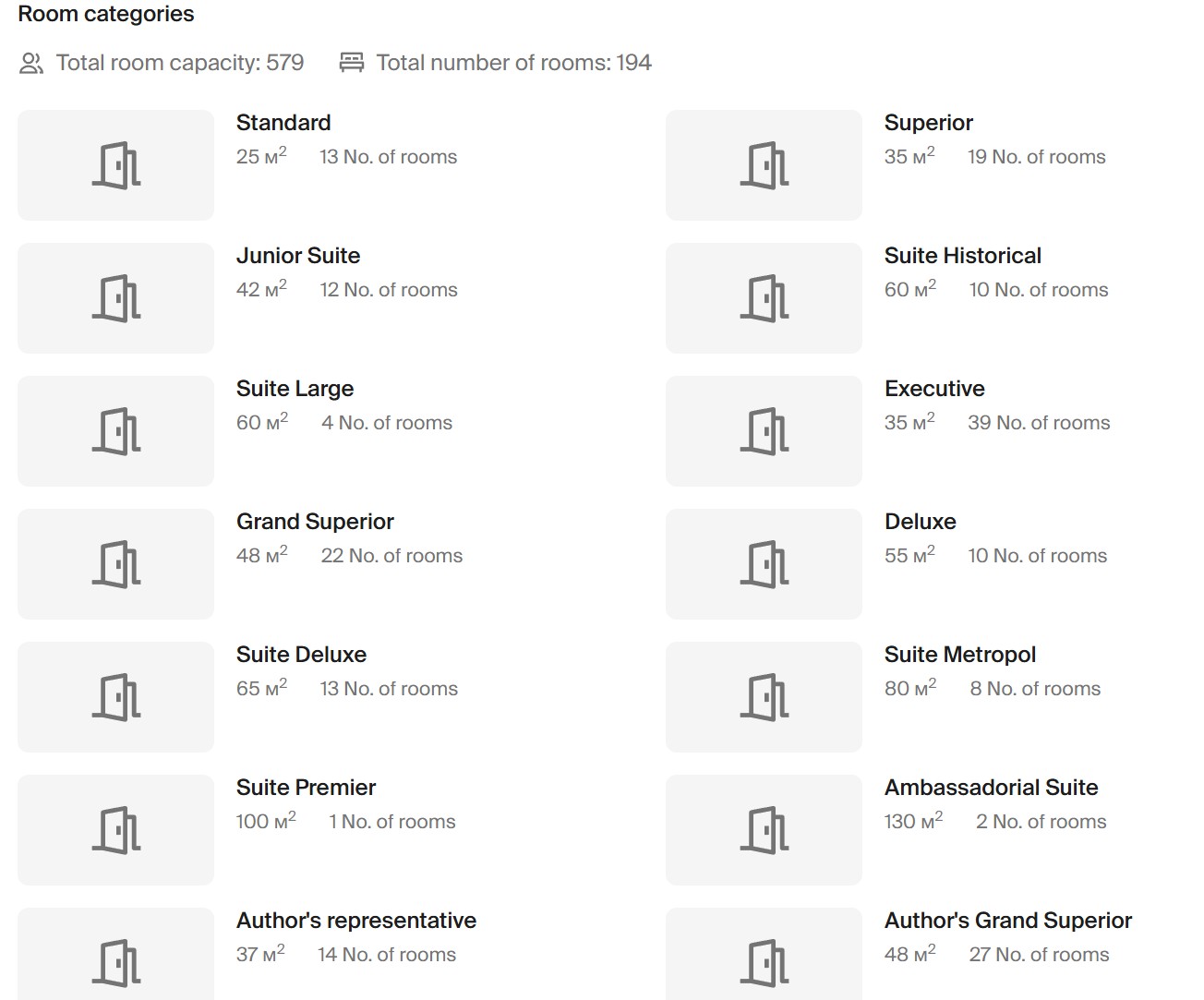 ด้วยประสบการณ์อันยาวนานและมาตรฐานการบริการระดับสูง Metropol Hotel จึงเป็นตัวเลือกที่สมบูรณ์แบบสำหรับการจัดงานในบรรยากาศที่หรูหรา มีเรื่องราว และเปี่ยมด้วยศักดิ์ศรีของประวัติศาสตร์รัสเซีย