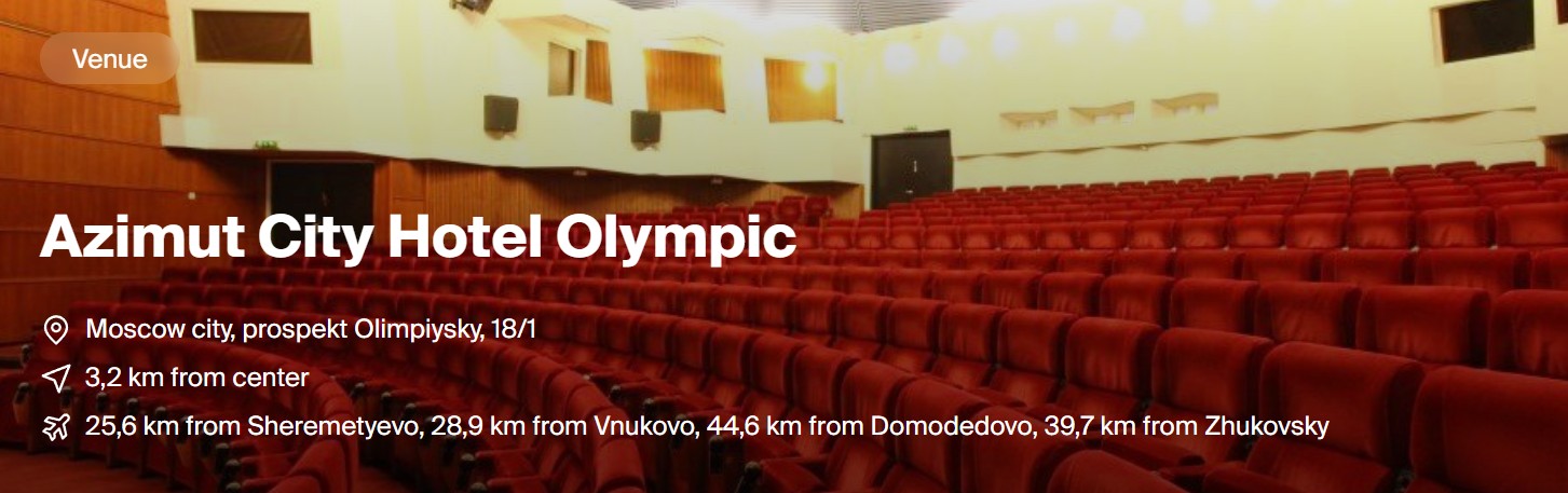 Address: 129110, Moscow, Olympiskyi pr 18/1 AZIMUT City Hotel Olympic Moscow